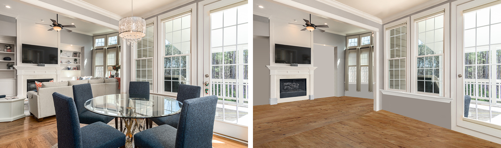We digitally furnish empty rooms with realistic, modern furniture to create a warm living experience and help buyers visualize lifestyle and scale — boosting interest and perceived value.